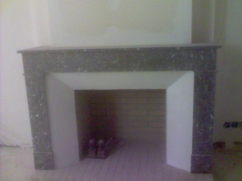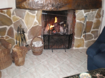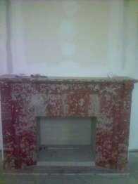 Plaquage de pierres , pose d'une poutre en bois avec remise en état du foyer