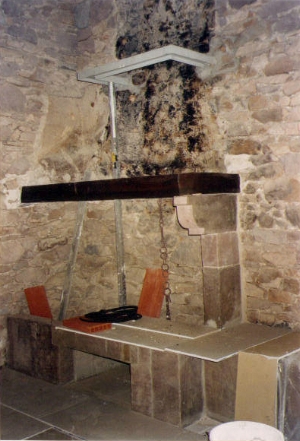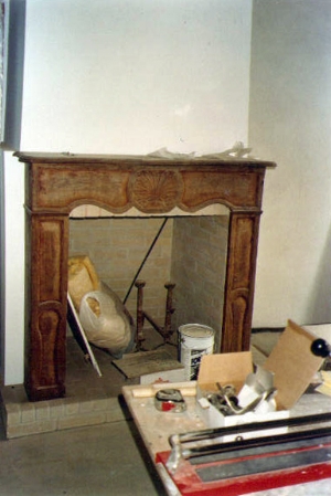 Après démolition, reconstruction de la cheminée à l'identique avec sa hotte traditionnelle.